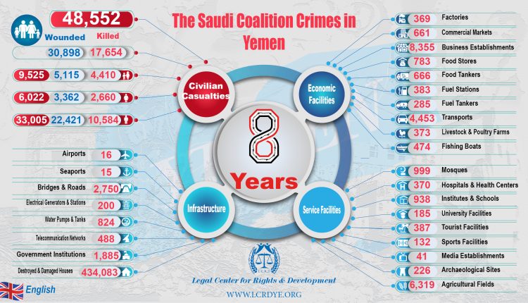 English – Statistic of 8 Years – The Saudi Coalition Crimes in Yemen Share English – Statistic of 8 Years – The Saudi Coalition Crimes in Yemen -Under-Secretary-General for Humanitarian Affairs and Emergency Relief Coordinatorinternational infographicinternational mapSaudi coalition Crimestargeted civiliansViolation war lawsYemen Share FacebookTwitterGoogle+ReddItWhatsAppPinterestEmail
