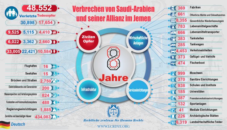 Deutsch – Der Stand nach 8 Jahre – Verbrechen von Saudi-Arabien und seiner Allianz im Jemen Share Deutsch – Der Stand nach 8 Jahre – Verbrechen von Saudi-Arabien und seiner Allianz im Jemen Share FacebookTwitterGoogle+ReddItWhatsAppPinterestEmail
