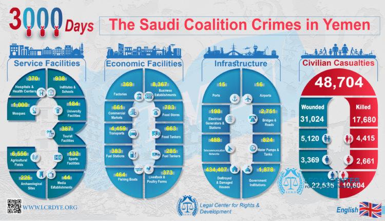 English Infographic – Statistic of 3000 Days – The Saudi Coalition Crimes in Yemen Share English Infographic – Statistic of 3000 Days – The Saudi Coalition Crimes in Yemen @lcrdye #Yemen #Saudi Share FacebookTwitterGoogle+ReddItWhatsAppPinterestEmail
