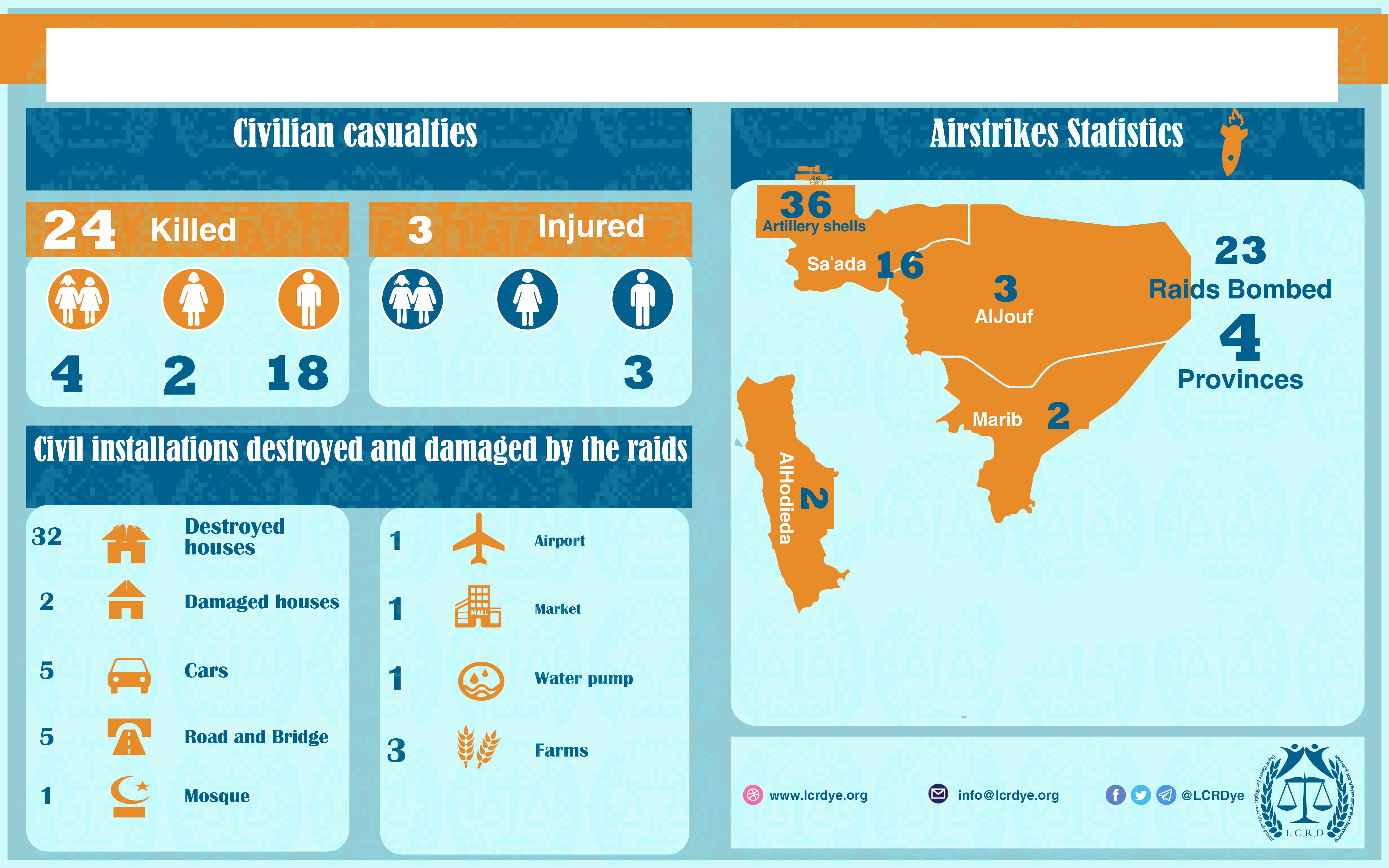 The Violation and Crimes that are committed by the Saudi Arabia and its collation in 23_1_2018 Share For download https://www.lcrdye.org/wp-content/uploads/2018/01/23-Jan-2018.pdf legal center for right and developmentSaudi coalition CrimesViolation war lawsYemen Share FacebookTwitterGoogle+ReddItWhatsAppPinterestEmail